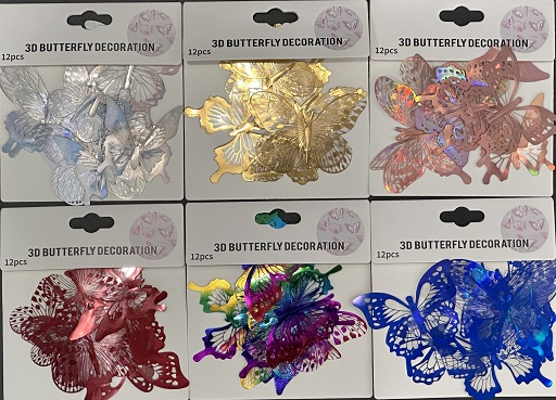 ADORNO MARIPOSAS 3D METALIZADA X12 CALADAS MARCA: