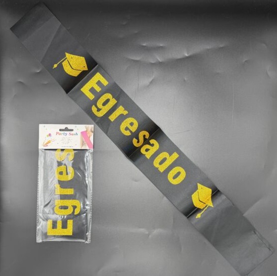 BANDA EGRESADO NEGRA FRASE DORADO GIBRE MARCA: