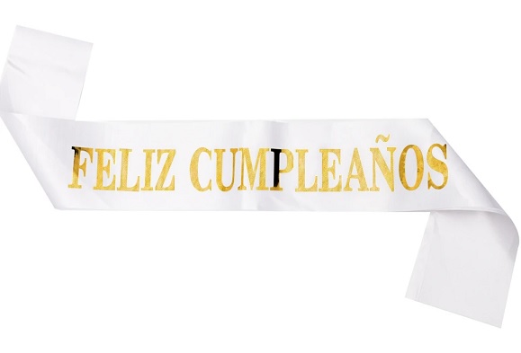 BANDA STAMPING FELIZ CUMPLE BLANCA DORADO MARCA: