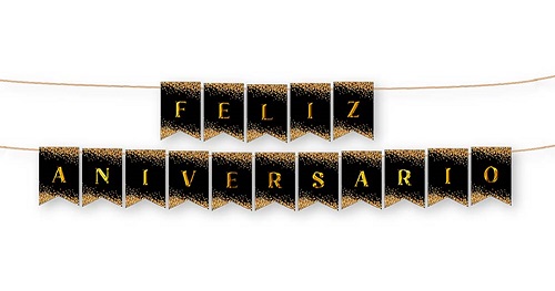 BANDERIN FELIZ ANIVERSARIO NEGRO MARCA: