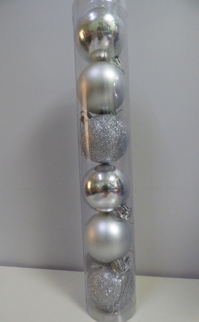 BOCHA NAVIDEÑA 5CM TUBO X 6UNID PLATA MARCA: