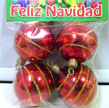 BOCHA NAVIDEÑA DECORADA 5CM X4 ROJO MARCA: