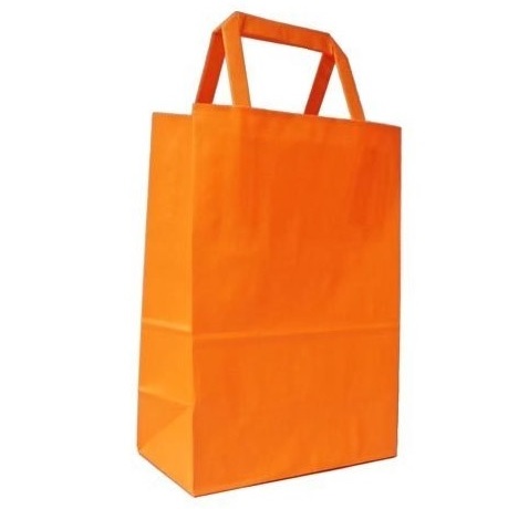 BOLSA PAPEL CON MANIJA 14X20 NARANJA