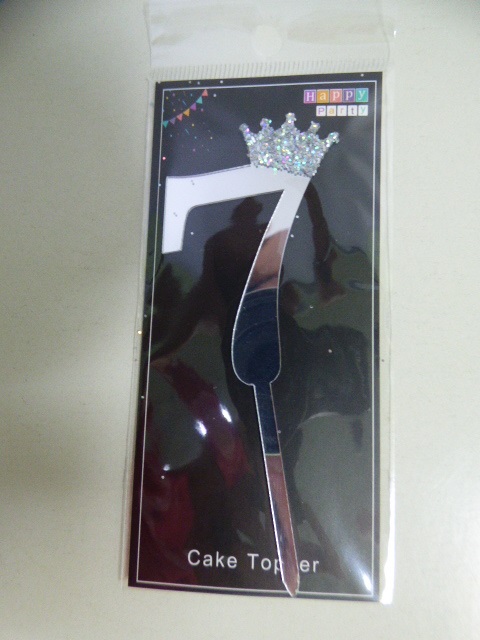 CAKE TOPPER GRANDE NUMERO 7 CORONITA PLATA MARCA: