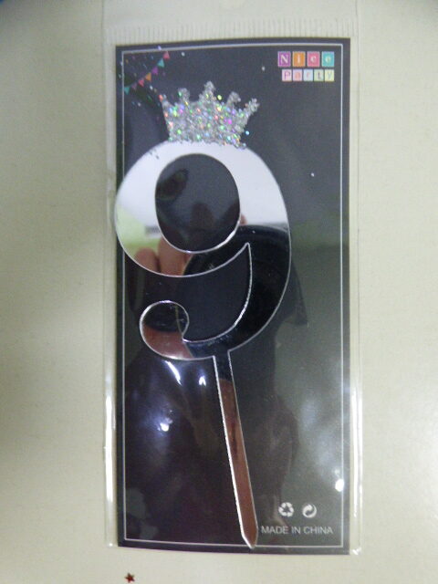 CAKE TOPPER NUMERO 9 CORONITA PLATA MARCA: