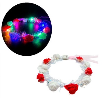 CORONA CON LUZ CON FLORES ROJA Y BLANCA MARCA: