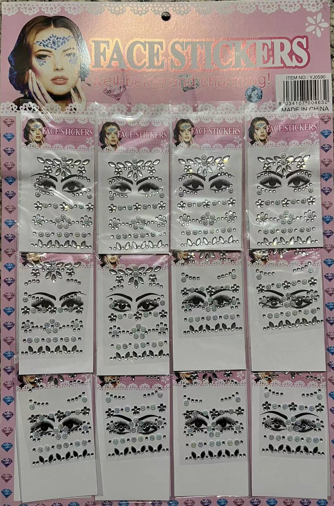 CRISTALES AUTOAD. PARA ROSTRO X 12 PLATA MARCA: