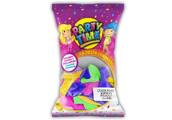 GLOBO PARTY TIME 9P FLUO X 25U SURTIDO MARCA: