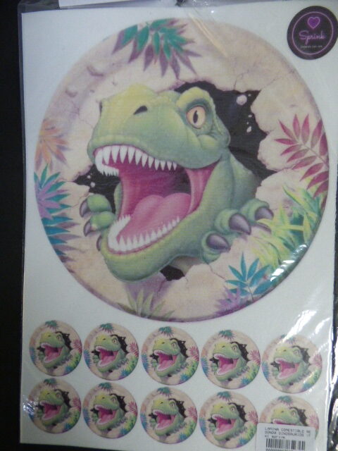 LAMINA COMESTIBLE REDONDA DINOSAURIO MARCA:
