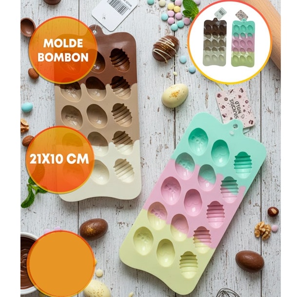 MOLDE SILICONA HUEVOS DE PASCUA DECORADOS X15 MARCA: