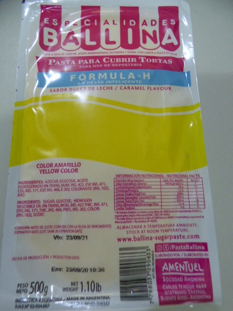 PASTA BALLINA COLOR AMARILLO X 500G MARCA:
