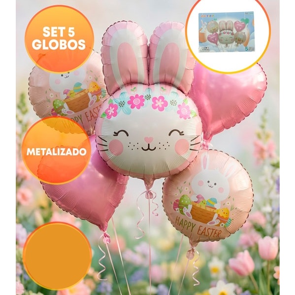 SET 5 GLOBOS PASCUA CONEJO CARA MARCA: