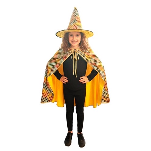 SET BRUJA / MAGO SOMBRERO Y CAPA MULTICOLOR