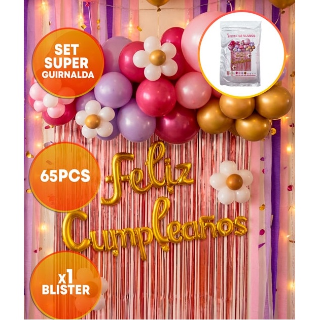 SET FELIZ CUMPLE CORTINA Y GLOBOS ROSA GOLD MARCA: