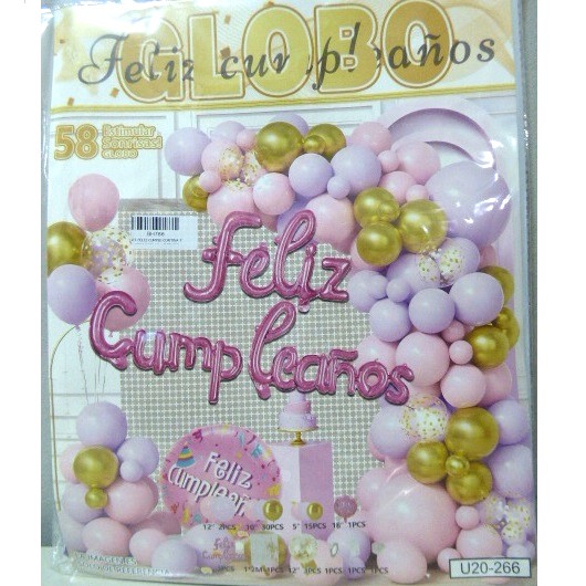 SET FELIZ CUMPLE CORTINA Y GLOBOS ROSA LILA DORADO MARCA: