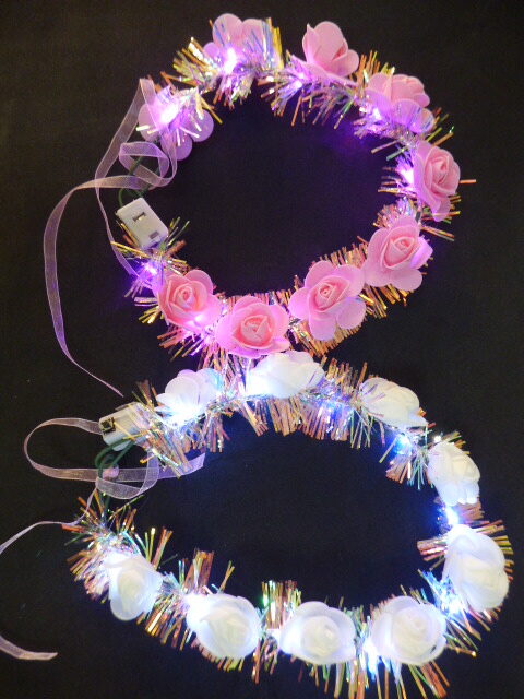 CORONA CON LUZ CON FLORES COLOR LISO.X1 MARCA: