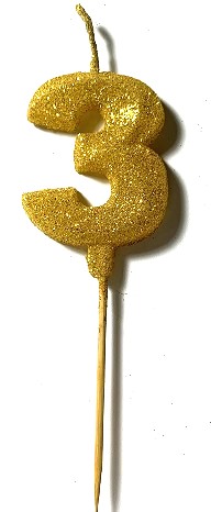 VELA NUMERO GIBRE BISELADA CON PALITO DORADO 3 MARCA:
