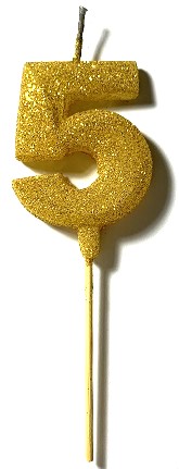 VELA NUMERO GIBRE BISELADA CON PALITO DORADO 5 MARCA: