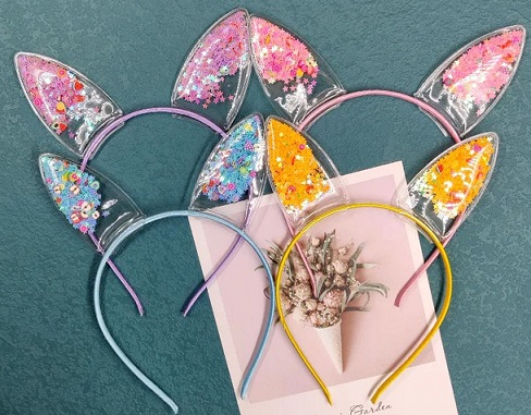 VINCHA CONEJA OREJA CRISTAL CON LENTEJUELA