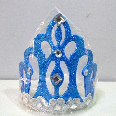 VINCHA CORONA GOMA EVA CELESTE CON BRILLO MARCA: