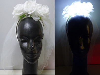VINCHA DE ROSAS CON TUL Y LUZ